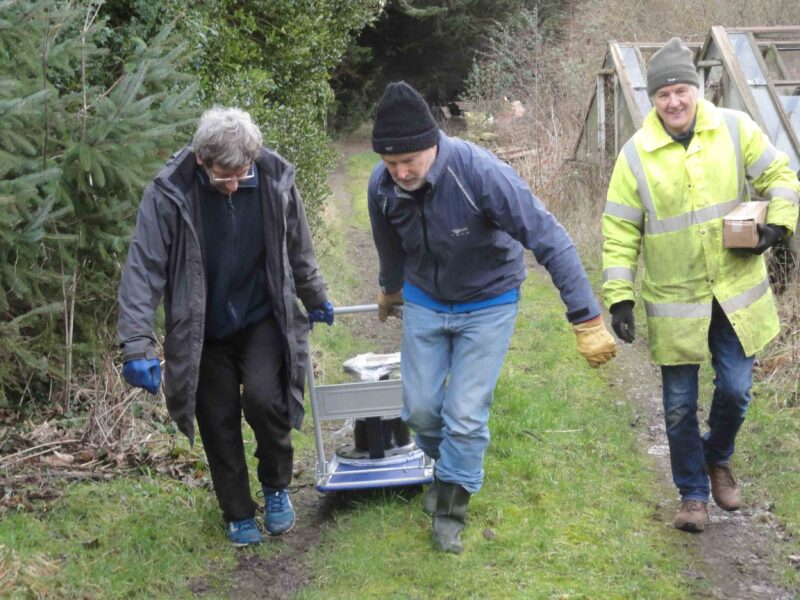 The bearing was delivered but we had to transport it from the roadside to the turbine. Fortunately Mike B has a trolley as it weighs 90kg.